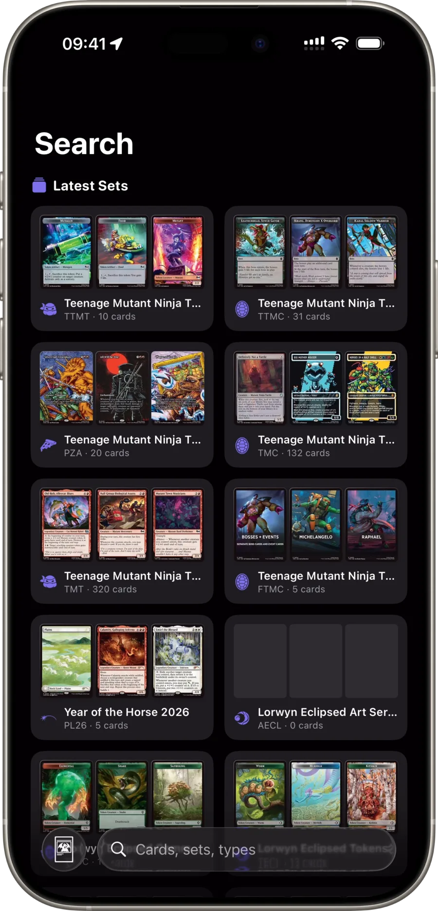 Collector Booster, Secret Lair, рамки Showcase, промо, ретро, безрамочные, серийные — всё каталогизировано и просматривается по карте.